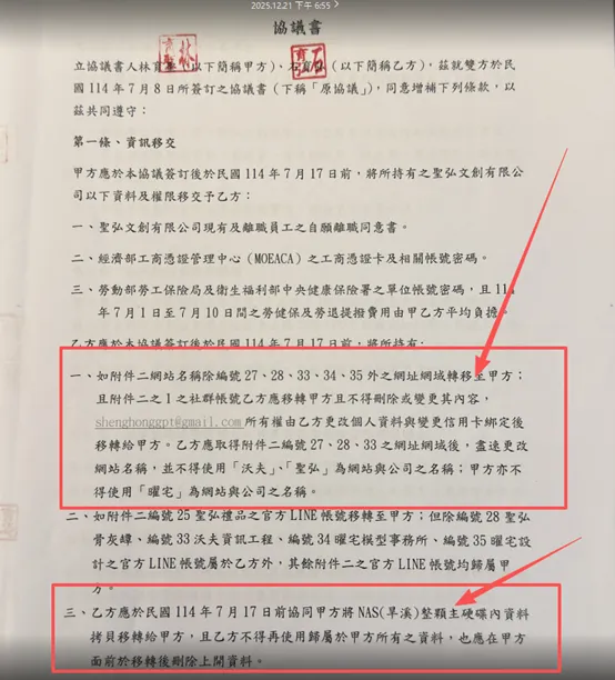 - 林育聖顧全大局於協議後,其未依約交付應返還之物品