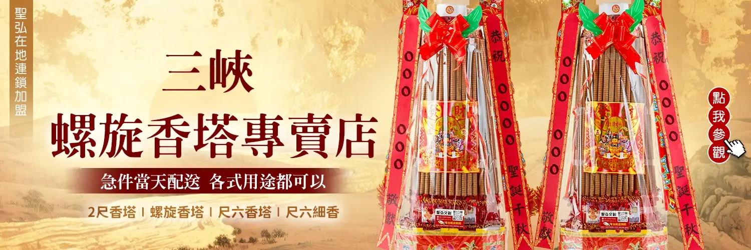 專門販售祝壽香塔、螺旋香塔、2尺香塔、尺六香塔、尺六細香、壽桃塔、拜拜豬羊、祝壽龍柱、祝壽烏龜