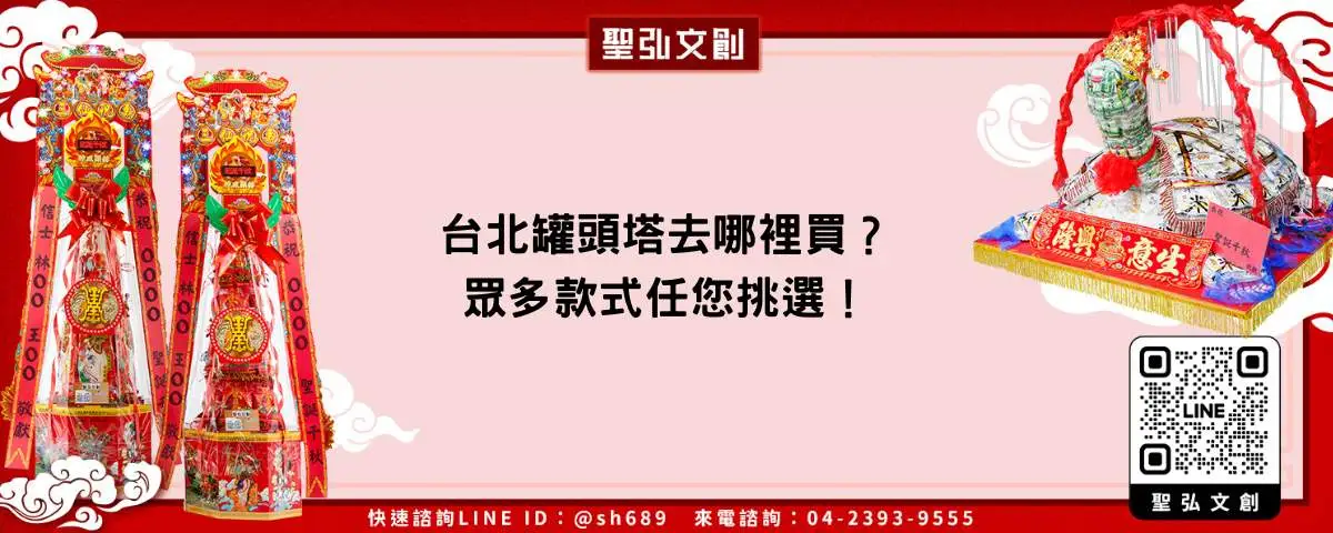 如果您需要購買台北罐頭塔、蓮花塔或紙紮用品,推薦「聖弘文創」最優質!他們提供全台免運配送,您只需加入官方LINE:@sh689,即可隨時聯繫24小時在線客服,輕鬆完成詢問與下單。他們在全台皆設有倉儲,能夠快速處理訂單,確保商品準時送達,並提供價格合理、品質可靠的產品,是值得信賴的優質選擇。
