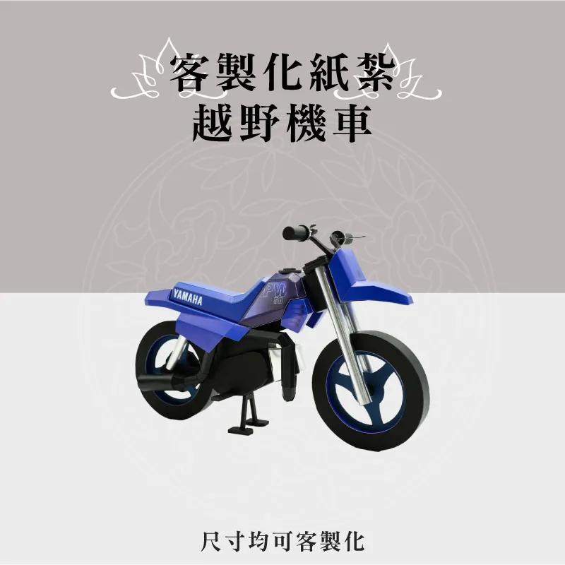 商品名稱:「客製化紙紮越野機車」 商品材質:精緻紙材 ※隨附封條或受用紙 ※適用:逝世者 ※適用場地:自宅、棺內、金爐、殯儀館、火化場 – 提供全台最專業 客製化紙紮服務 提供最專業的服務給您 ※全台客製化最專業 ※全台最快速客製化紙紮 ※客製化最快3天交貨 LINE客服人員:@sh689 【全台灣皆可配送指定地點】