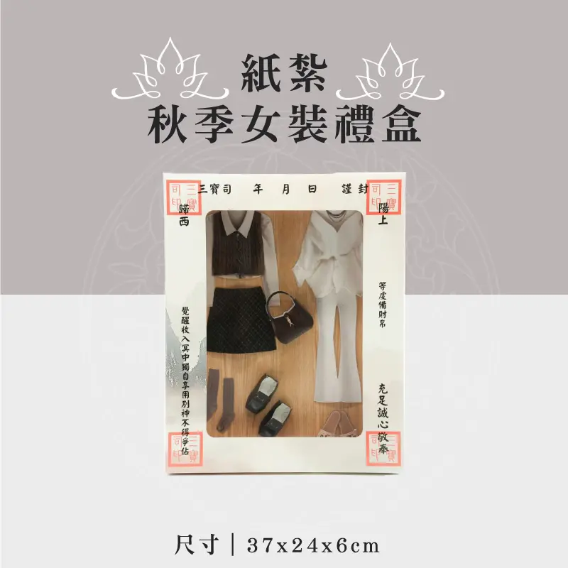 商品名稱:「紙紮秋季女裝禮盒」 商品材質:精緻紙材 ※隨屋附地契、女僕、管家、司機、封條或受用紙 ※適用:逝世者 ※適用場地:自宅、棺內、金爐、殯儀館、火化場 – 提供全台最專業 客製化紙紮服務 提供最專業的服務給您 ※全台客製化最專業 ※全台最快速客製化紙紮 ※客製化最快3天交貨 LINE客服人員:@sh689 【全台灣皆可配送指定地點】