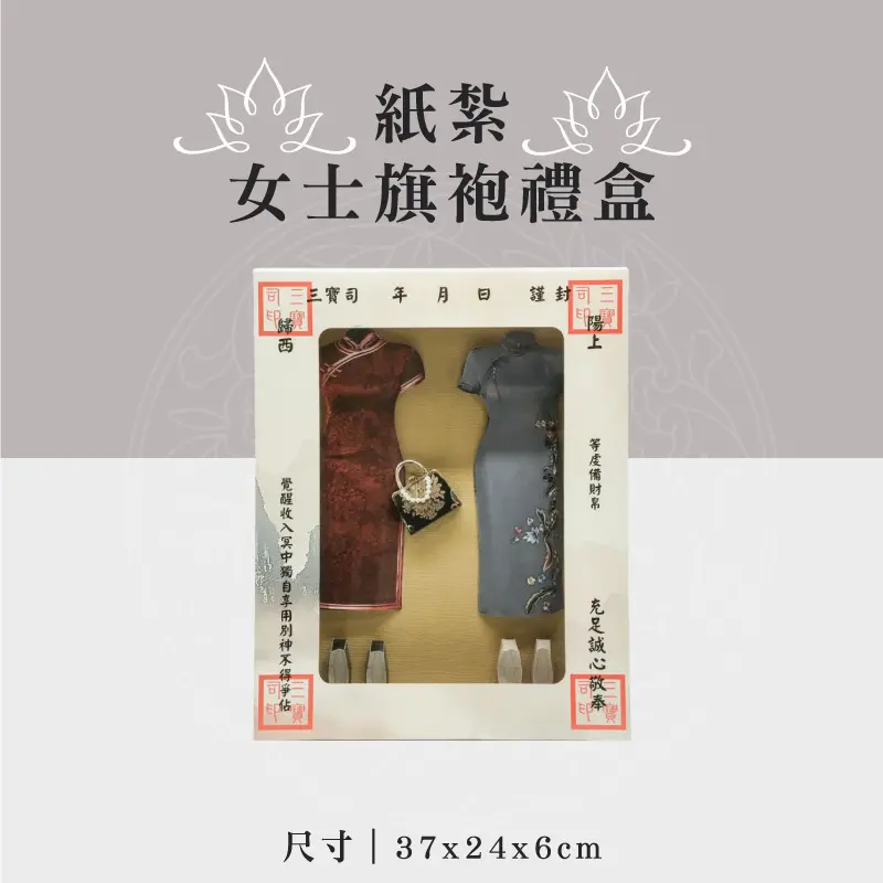 商品名稱:「紙紮女士旗袍禮盒」 商品材質:精緻紙材 ※隨屋附地契、女僕、管家、司機、封條或受用紙 ※適用:逝世者 ※適用場地:自宅、棺內、金爐、殯儀館、火化場 – 提供全台最專業 客製化紙紮服務 提供最專業的服務給您 ※全台客製化最專業 ※全台最快速客製化紙紮 ※客製化最快3天交貨 LINE客服人員:@sh689 【全台灣皆可配送指定地點】