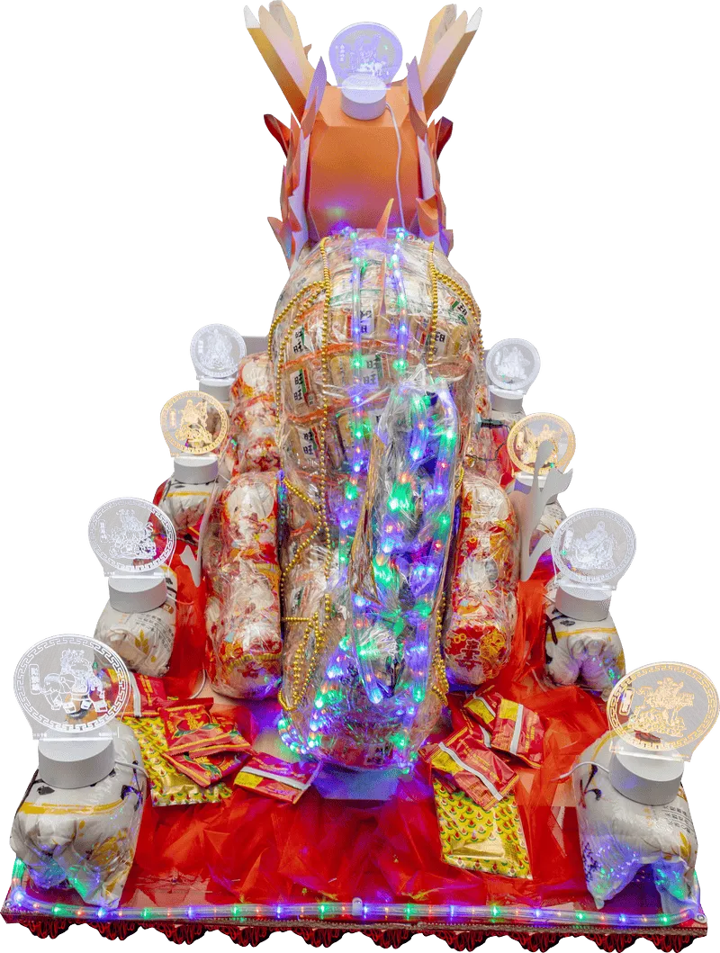八仙乘龍,龍:諧音「隆」,象徵事業、廟宇長遠興隆。