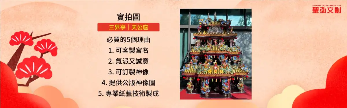 商品名稱:客製三界亭 商品特色:用於供俸神祇的特殊宮殿,可客製化製作宮廟! 商品規格:120 x 180 x cm LINE客服人員:@sh689 【神明生日前 請提前預訂】 【全台灣皆可配送指定地點】