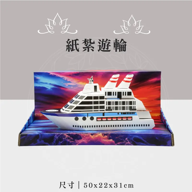 商品名稱:「紙紮遊輪」 商品材質:精緻紙材 商品顏色:黑色/銀色 ※隨附封條或受用紙 ※適用:逝世者 ※適用場地:自宅、棺內、金爐、殯儀館、火化場 – 提供全台最專業 客製化紙紮服務 提供最專業的服務給您 ※全台客製化最專業 ※全台最快速客製化紙紮 ※客製化最快3天交貨 LINE客服人員:@sh689 【全台灣皆可配送指定地點】