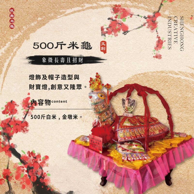 烏龜具有長壽之意義 且身上的龜殼為古代貨幣 所以用糖果打造而成的烏龜 用這款 乞龜 能夠向神明祈求身體平安或帶來財富聖弘文創 - 祝壽商品用途