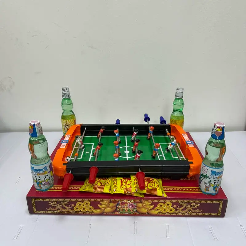 商品內容物:足球台玩具、彈珠汽水、王子麵