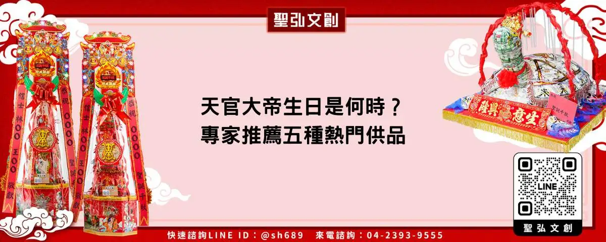 「聖弘文創」擁有多年經驗,提供多樣化的商品,品質優良、服務專業,不論是祝壽神明或贈送親友,都能體面又有誠意。訂購方式也十分方便!只需加入官方LINE:@sh689,即可與線上客服聯繫,確認需求並安排適合的配送時間。商品送達後,還會拍照回傳,貼心服務讓您完全放心!