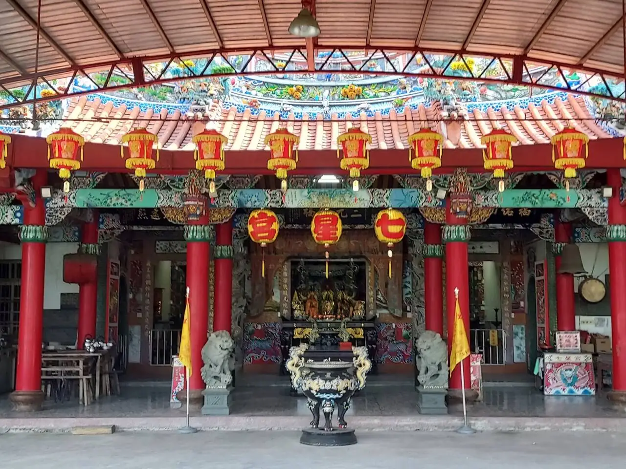 七星宮以三官大帝為主祀,三官即天官、地官、水官,分別掌管福、禍、赦罪與時序,信眾常向三官祈求家宅平安、病除福增與事業順利。廟內除了主神外,也可見觀音、地藏等菩薩陪祀,反映出宗教生活的混融性:道教祭祀與民間佛教慈悲觀念並存。當地人在重大節日或家中有事時會到廟裡燒香、上疏或安太歲,並以香火與祭品維繫與神明的日常對話;對村民而言,三官大帝既是統管世間福祉的存在,也是生活中求穩定、求平安的一處心靈靠山。