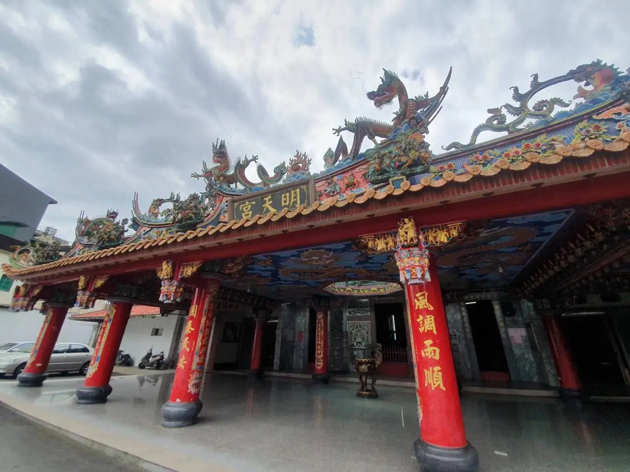 明天宮主祀關聖帝君,關帝在民間既是武勇與義氣的象徵,也常被視為守護商賈、律法與社區正義的神明。廟內供桌與陪祀廟殿也見媽祖、觀音、山神與福德正神,反映出多元而務實的在地信仰結構。當地信眾向關聖帝君祈求平安、求事業順利或替社區祀典祈福;每逢關聖帝君聖誕,廟方備有素鹹湯圓、甜湯圓與鹼粿等點心分送香客,既是宗教儀式也是社區共享的飲食文化,讓祭祀形成連結感與共同記憶。