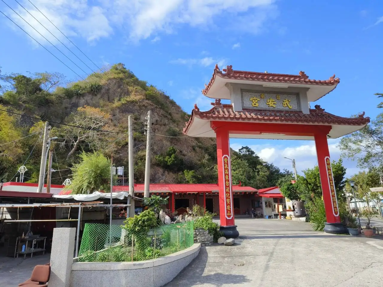 武安宮位於臺東市博愛路498巷16號,座落於鯉魚山腳下,附近有公園與步道,週遭環境靜謐且具社區生活感。地理座標約為22.754426, 121.144305,巷弄可步行抵達,周邊多為在地商家與住家,廟口常見居民來來回回,午後或傍晚有散步的長者與玩耍的孩童。廟宇因鄰近綠地,晨昏時分有山景與清新空氣,信眾與遊客可同時感受宗教場域與自然景觀的結合。對外來訪客而言,從主要道路進入博愛路巷即可輕鬆找到,周邊生活機能使朝拜與日常活動都相當便利。